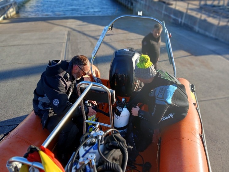 Most divers arrived on Friday evening, ensuring they were ready to start diving the following morning. Preparations began early on Saturday, with the group launching their boat at the slipway at Osprey Quay, Portland.